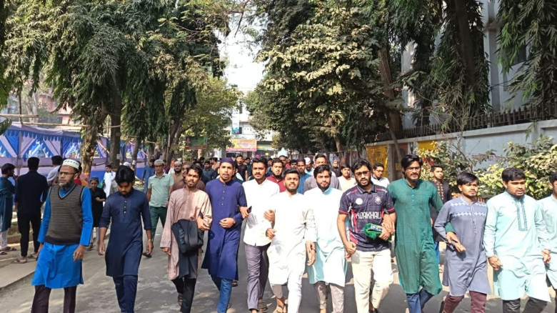 আজ শুক্রবার (২৩ জানুয়ারি) বাদ জুমা কলেজের শহীদ মিনারের সামনে থেকে শুরু হওয়া বিক্ষোভ মিছিলটি মহাখালী টিভি গেট প্রদক্ষিণ করে পুনরায় ক্যাম্পাসের প্রধান ফটকের সামনে এসে একটি সংক্ষিপ্ত সমাবেশের মাধ্যমে শেষ হয়।