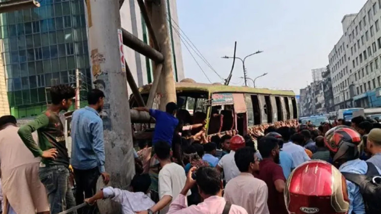বনানীতে পথচারীকে বাঁচাতে গিয়ে বাসচাপায় নিহত ২, আহত ৩