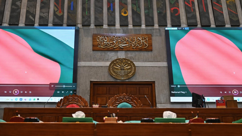 জাতীয় সংসদের অধিবেশন কক্ষে স্পিকারের চেয়ার বরাবর উঁচু দেয়ালে পবিত্র কালিমা তাইয়্যেবা ‘লা-ইলাহা ইল্লাল্লাহু মুহাম্মাদুর রাসুলুল্লাহ’ লেখা আরবি ক্যালিগ্রাফি স্থাপন করা হয়েছে। প্রধানমন্ত্রী তারেক রহমানের নির্দেশে এই পবিত্র কালিমা তায়্যেবার ক্যালিগ্রাফিটি স্থাপন করা হয়।