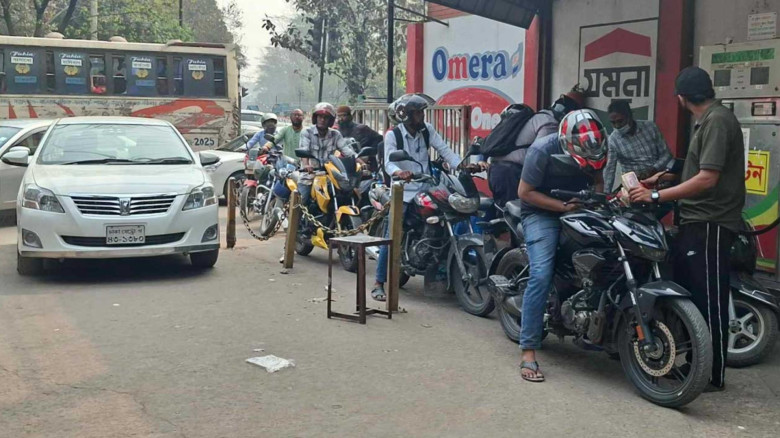 পর্যাপ্ত মজুতের আশ্বাসের মাঝেও পাম্পে লাইন, জ্বালানি সংকটে অব্যবস্থাপনার অভিযোগ