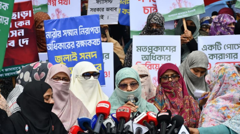 বিবি সওদার মামলা প্রত্যাহারসহ ৮ দফা দাবিতে মহিলা জামায়াতের মানববন্ধন