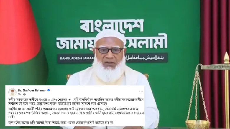 বগুড়া-৬ ও শেরপুর-৩ আসনের উপনির্বাচনকে কেন্দ্র করে অনিয়ম, জাল ভোট ও সহিংসতার অভিযোগ তুলে দলীয় সরকারের অধীনে নির্বাচন ব্যবস্থার কড়া সমালোচনা করেছে বাংলাদেশ জামায়াতে ইসলামী। দলটির আমির ডা. শফিকুর রহমান বলেছেন, দলীয় সরকারের অধীনে নির্বাচন কেমন হতে পারে, তার ‘বীভৎস রূপ’ ইতিমধ্যেই জাতির সামনে চলে এসেছে। বৃহস্পতিবার (৯ এপ্রিল) সামাজিক যোগাযোগমাধ্যম ফেসবুকে নিজের ভেরিফায়েড পেজে দেওয়া এক পোস্টে তিনি এ মন্তব্য করেন।